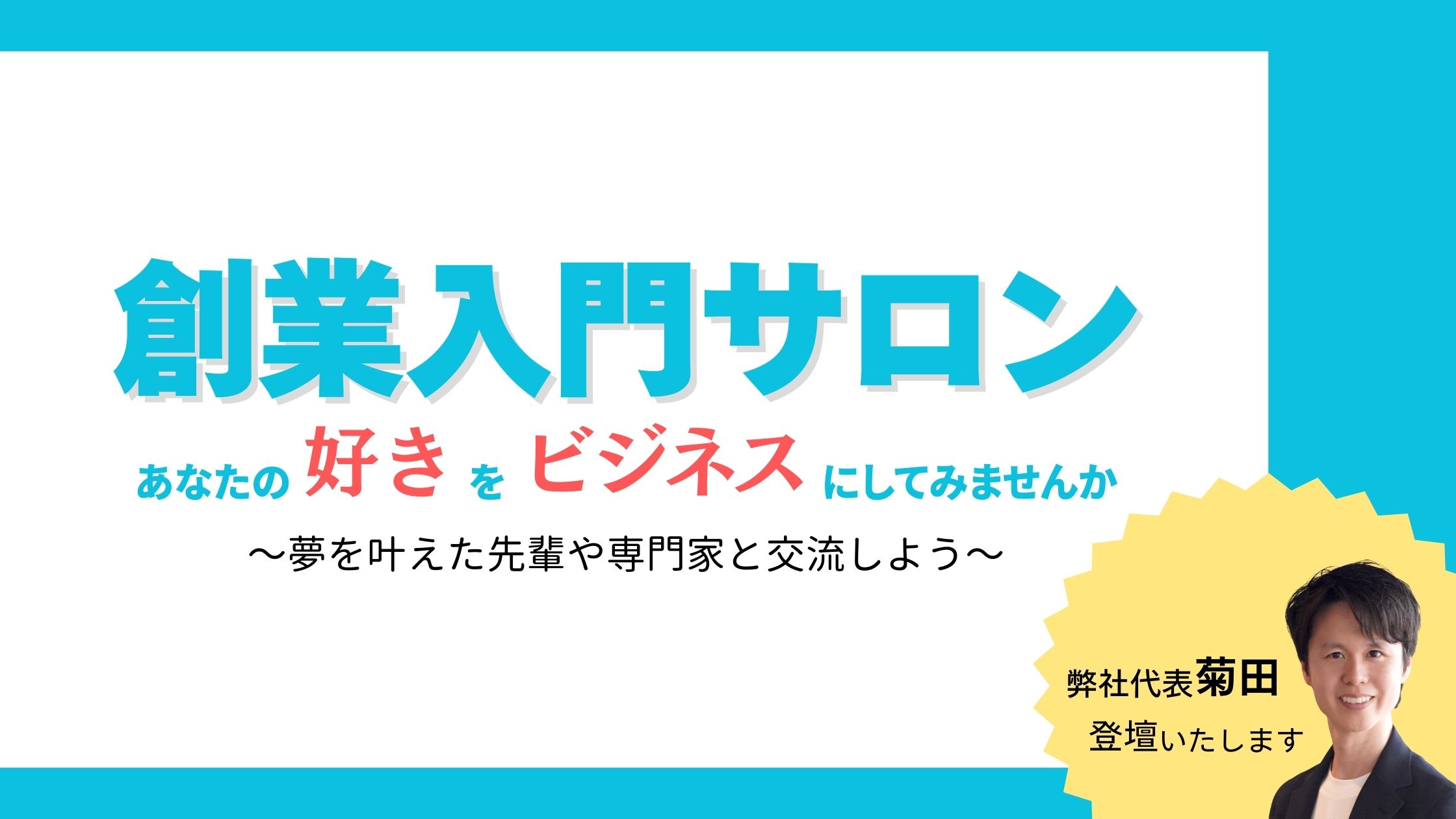 <創業入門サロン あなたの好きをビジネスにしてみませんか 〜夢を叶えた先輩や専門家と交流しよう〜 概要>